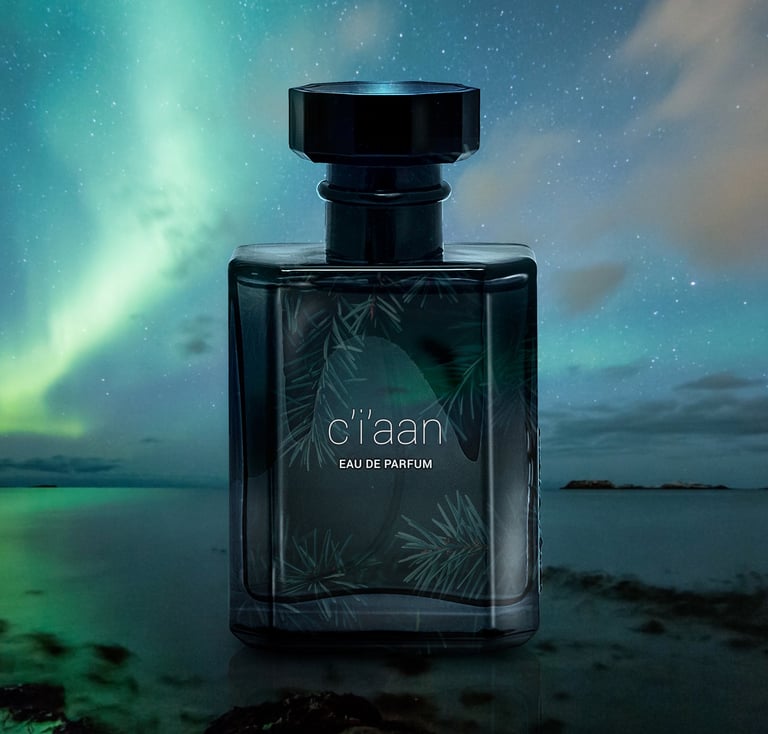 The experience we aimed for was like being enveloped in an Arctic forest, gazing up at the shimmering Northern Lights. c'i'aan is a crisp, woodsy aroma inspired by the fjords and peaks of Alaska.
